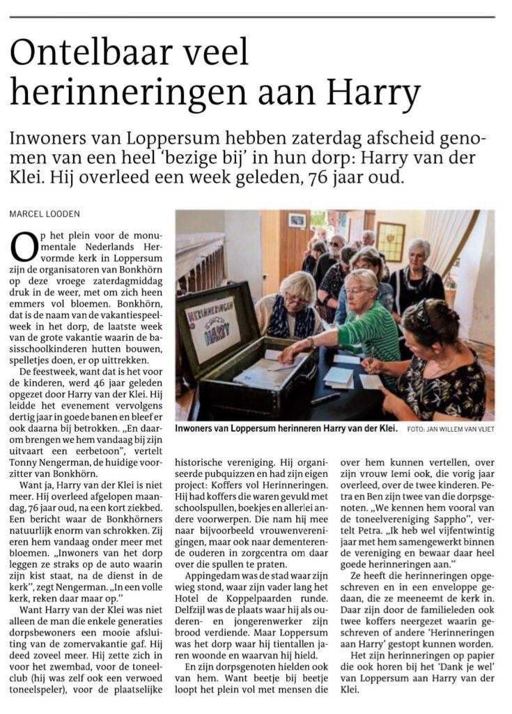 Op zaterdag 29 juni was de uitvaart in de hervormde kerk in Loppersum en tijdens de uitvaart heeft de huidige voorzitter en spreekstalmeester – Tonny Nengerman – gesproken namens Bonkhörn.